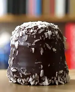 Chocolate-coated marshmallow treats, also known as chocolate teacakes, are confections consisting of a biscuit base topped with marshmallow-like filling and then coated in a hard shell of chocolate. They were invented in Denmark in the 19th century[1] under the name Flødeboller (cream buns), and later also produced and distributed by Viau in Montreal as early as 1901. Numerous varieties exist, with regional variations in recipes. Some variants of these confections have previously been known in many countries by names comprising equivalents of the English word negro.