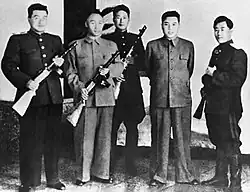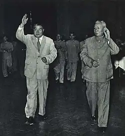 In 1946, he became the chairman of the Korean Democratic Party (KDP) and led this organization to a pro-communist course.[1] He was, however, concurrently secretly a member of the ruling Workers' Party of Korea and tasked with keeping the KDP from becoming an independent political force.[2] Afterwards, he came into more promotions and by February 1948, he was appointed the Chief Commander of the Korean People's Army.[1] When North Korea was established in Pyongyang on September 9, 1948, he was appointed the Minister of National Security. He was in fact the senior field commander for all the North Korean armies during the Korean War, from the first invasion of South Korea in June 1950 till the Korean Armistice Agreement was signed in July 1953.