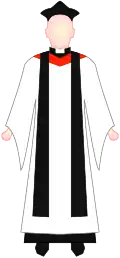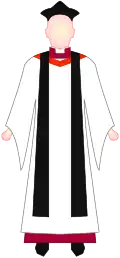Choir dress is the traditional vesture of the clerics, seminarians and religious of Christian churches worn for public prayer and the administration of the sacraments except when celebrating or concelebrating the Eucharist. It differs from the vestments worn by the celebrants of the Eucharist, being normally made of fabrics such as wool, cotton or silk, as opposed to the fine brocades used in vestments. It may also be worn by lay assistants such as acolytes and choirs. It was abandoned by most of the Protestant churches that developed from the sixteenth-century Reformation.[1]