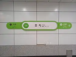 Choji station (Korean: 초지역) is a commuter railway station on Seoul Subway Line 4, the Suin–Bundang Line and the Seohae Line in Ansan, South Korea. Trains on Line 4 utilize what is officially named the Ansan Line within the city of Ansan, as do those on the Suin-Bundang Line, which stop at the station on the same tracks using the same platforms.[1]