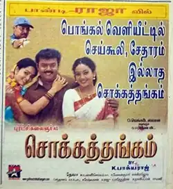 Chokka Thangam (transl. Pure gold) is a 2003 Indian Tamil-language drama film written and directed by K. Bhagyaraj and produced by G. Venkateswaran under the banner GV Films. It stars Vijayakanth, Soundarya, and Uma with Goundamani, Senthil, Prakash Raj, and Swathi playing supporting roles. The background score and music were composed by Deva. The film was released on 15 January 2003 and became commercially successful.