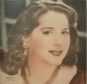 Chola Luna (stage name Alcira Carmen Luna; 12 February 1919 - 2 April 2015) was an Argentine tango singer, who flourished during the 1930s through 1950s. From 1955, she was persecuted for her political ideas during the self-appointed dictatorship of the Revolución Libertadora which ousted in a bloody Coup d'état the democratic elected government of Juan D. Peron (1946-1955). Many performers had to stop their profession, including Luna, and others, persecuted and blacklisted for their political beliefs.