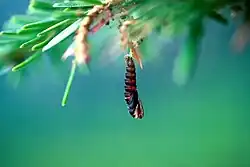 The larvae feed on Abies alba, Abies nephrolepis and in North America also Cedrus Juniperus Picea, Pinus and Pseudotsuga species. Young larvae feed on new shoot of their host plant. Pupation takes place on the ground near the host. The species overwinters as a young larva.
