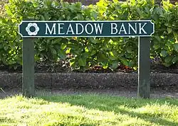 The Chorltonville estate comprises 262 houses in twelve roads, centred on a "village green", The Meade. It measures about 550 yards east-west by 280 yards north-south—around 26 acres. The estate is separated from the central part of Chorlton on the north by Chorlton Brook,[1] and on the south side borders the Hardy Lane residential area and the fields of Hardy Farm in the Mersey Valley Countryside area.[2] Vehicular access is via Claude Road (east) or Brookburn Road (north), and there is a footpath to Hurstville Road on the south side and another towards Hardy Farm to the south-west. The estate and an adjoining football field (owned and occupied by West Didsbury & Chorlton Football Club) are one of Manchester Council's 32 conservation areas. The designation was made in 1991.[3][4]