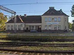 Chorzów Batory–Tczew railway is a major part of the interwar Polish Coal Trunk-Line, which connected Upper Silesia with the Port of Gdynia, bypassing the territory of the Free City of Danzig. A change was made to the northern section of the line, north of Nowa Wieś Wielka.[8] The original Polish Coal Trunk-Line ran from this station along Nowa Wieś Wielka–Gdynia Port railway. The purpose of the line led to bypassing Łódź, which was located several dozen kilometers away. The only large city the line passed through was Bydgoszcz, although the route ran through the city's peripheral eastern part.[8]