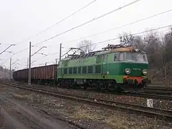 The congestion problem was partially addressed by introducing new six-axle coal wagons and twin-section locomotives.[49] Initially, in the spring of 1976, ET40 electric locomotives were introduced, followed by ET41s in October 1977[33] and ET42s in April 1978. All Polish ET42 units were initially assigned to the Karsznice locomotive depot,[50] though some were later relocated to the newly opened depot in Idzikowice.[48] During this period, a Polish record for the heaviest train was set on the Tarnowskie Góry–Tricity route (likely to the Northern Port in Gdańsk), with a gross weight of 4,180 tons (net 3,040 tons).[49]