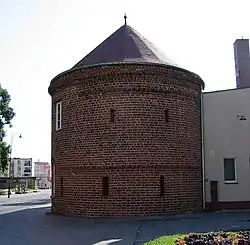 In 1939, soon after the beginning of Second World War, the prisoner of war camp Oflag II B was established on the outskirts of the town. At the beginning, the majority of the prisoners were Polish and French. Among the prisoners were officer Henryk Sucharski, writer Leon Kruczkowski and Olympic athlete Zygmunt Weiss.[45] The Poles were used in the town as slave labor by the Germans.[46]
