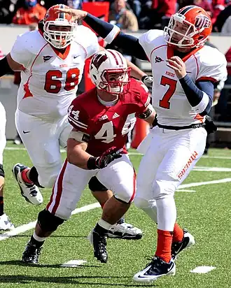 In track & field, he was one of the state's top performers in the shot put. He placed fifth at the state meet in the shot put as a junior. At the 2008 Fairmont Firebird Invitational, he recorded a PR of 11.97 seconds in the 100 meters.[3] He got a top-throw of 41.05 meters in the discus at the 2008 OHSAA District T&F Championships. He was the runner-up to the state title in the shot put event at the 2009 OHSAA District T&F Championships, recording a career-best throw of 18.62 metres (61.1 ft).