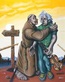 His painting of the fourth Station of the Cross (Jesus meets his Mother) was shown in the exhibition Presence: Images of Christ for the Third Millennium in St Paul's Cathedral in 2004, along with works by Bill Viola, Tracey Emin, Maggi Hambling and Craigie Aitchison.[16] In the same year, he began painting images of Albert Einstein, before the 50th anniversary of Einstein's death in 2005 and before the centenary in 2005 of the General Theory of Relativity. Partially inspired by a lyric in Bob Dylan's ballad "Desolation Row", Chris Gollon painted "Einstein & The Jealous Monk". This painting was subsequently purchased by the Huddersfield Art Gallery[17] in West Yorkshire, where it hangs in the museum's permanent collection alongside Sir Jacob Epstein's bust of Einstein, and works by Francis Bacon, Walter Sickert, Henry Moore and L.S. Lowry.