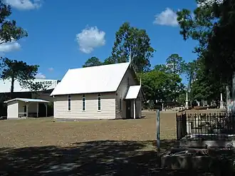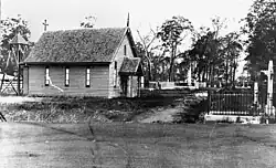 The Tingalpa site, one acre of high ground fronting the road to Lytton (now Wynnum Road) about 6 miles (9.7 km) beyond Kangaroo Point, was transferred early in 1868 from Joseph Berry to the Church Trustees (Bishop Edward Wyndham Tufnell and Tingalpa farmers Charles Coxen, John Mackenzie Shaw, Richard Warren Weedon and William Roach Wood). Importantly, the site was central to the small but scattered farming community of the Bulimba-Tingalpa district (which in 1868 encompassed Wynnum, Manly and Lota as well). The ground was cleared by voluntary labour and funds were raised through local and British subscription.[1]