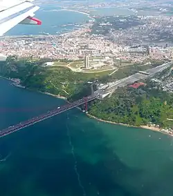 The Sanctuary of Christ the King[1][2][3] (Portuguese: Santuário de Cristo Rei) is a Catholic monument and shrine dedicated to the Sacred Heart of Jesus Christ overlooking the city of Lisbon situated in Almada, in Portugal. It was inspired by the Christ the Redeemer statue of Rio de Janeiro, in Brazil, after the Cardinal Patriarch of Lisbon visited that monument. The project was inaugurated on 17 May 1959. The giant statue was erected to express gratitude because the Portuguese were spared the direct destructive effects of World War II.