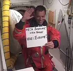 Married with three children, he was a Fellow at CERN and taught mathematics at the Royal Institute of Technology before being selected to join the European Astronaut Corps in 1992. He has participated in two Space Shuttle missions and five spacewalks, and is the first person outside of the United States or Russian space programs to participate in more than three spacewalks.