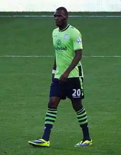 On 15 September 2012, Benteke scored on his debut for Aston Villa in a 2–0 win against Swansea City, after coming on as a substitute for Austrian forward Andreas Weimann. The goal came when Swansea defender Ashley Williams headed the ball into Benteke's path, which he then lifted over the keeper and tapped in on the volley. Villa manager Paul Lambert praised Benteke's performance on his debut calling him "unplayable".[15] He then scored Villa's only goal in a 1–1 home draw with Norwich City.[16] He added a further two goals to his tally during a 3–2 victory over Swindon Town in the League Cup.[17] He scored the winner in a 1–0 Premier League victory for Villa against Reading at Villa Park on 27 November to continue his impressive start in English football.[18]