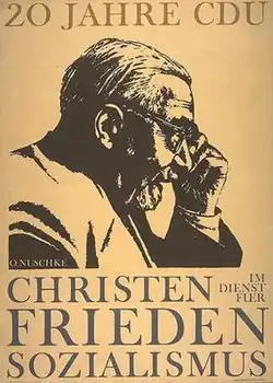 The Christian Democratic Union of Germany (German: Christlich-Demokratische Union Deutschlands, CDU) was an East German political party founded in 1945. It was part of the National Front with the Socialist Unity Party and a bloc party until 1989.