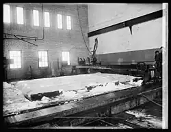 In 1896 he opened his new, fireproof brewery, which had a capacity for 500,000 barrels of beer a year. It was one of the first fireproof buildings in the city. The brewery, which rested on the Potomac River, is now the site of the Kennedy Center for the Performing Arts and part of the approach of the Theodore Roosevelt Bridge.[2][12][13] The brewery was the second largest employer in Washington D.C. during this time, apart from the federal government.[7] By 1897, Heurich had expanded his brewing enterprises to Norfolk, Virginia.[14] The brewery would close in 1919 due to Prohibition, and the company would focus its operations on ice production. They resumed beer production in 1933 after the repeal of prohibition, and they stopped producing ice in 1940. Heurich would continue working at the brewery until his death. The brewery would close down in 1956.[2][12][15]