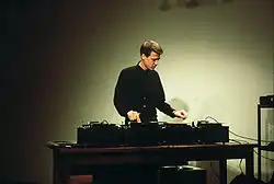 Marclay's work explores connections between sound art, noise music, photography, video art, film and digital animations. A pioneer of using gramophone records and turntables as musical instruments to create sound collages, Marclay is, in the words of critic Thom Jurek, perhaps the "unwitting inventor of turntablism."[1] His own use of turntables and records, beginning in the late 1970s, was developed independently of but roughly parallel to hip hop's use of the instrument.[2]