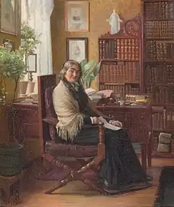 Belonging to a gifted and literary family, she began publishing work in the 1850s and 1860s, partly under the pseudonym Erica,[2] with several spiritual and fatherlands historical poems (among others Heather Flowers 1856, Historical Poems 1861, Danmarks Fadervor 1864, Spiritual Poems 1865, The Guardian 1870). She also published in 1884 an abridged translation of Torquato Tasso's Liberated Jerusalem.[2][1]