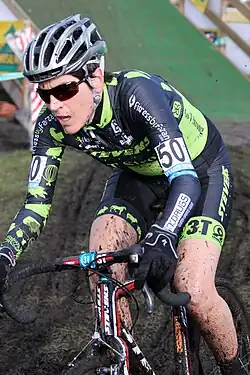 Christine "Peanut" Vardaros is a vegan professional cyclist,[1][2][3] both vegan and professional since 2000. She began her cycling career in 1996 as a mountain biker for Team Breezer run by Joe Breeze while still living in her hometown of Manhattan. In 2008, she relocated to Mill Valley, California, to pursue her goal of becoming a professional which she achieved two years later. In 2002, she transitioned from the mountain bike to the road and cyclo-cross. In 2008, Vardaros again relocated to her current residence in Everberg, Belgium. Since this relocation, she is most known as a cyclo-cross specialist.