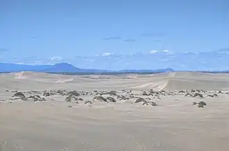 The Christmas Valley Sand Dunes are a natural sand dune complex covering 11,000 acres (45 km2) of public lands east of Christmas Valley in Lake County, Oregon, United States, about 100 miles (160 km) southeast of Bend. The area is accessible via the Christmas Valley National Back Country Byway.[1] The dunes are up to 60 feet (18 m) high.[1] It is the largest inland shifting sand dune system in the Pacific Northwest.[2] The dunes are composed mostly of ash and pumice from the eruption of Mount Mazama that formed Crater Lake 7,000 years ago.[3] Approximately 8,900 acres (36 km2) of dunes are open to vehicles.[3]