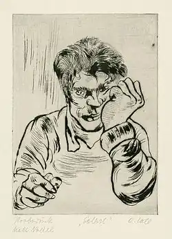 In 1920, he joined the Dresdner Sezessionsgruppe 1919, a creative society of intellectuals and artists intent on recasting world orders according to a utopian form of socialism.[2] The group included prominent contemporary artists such as Otto Dix, Conrad Felixmüller, Hugo Zehder (architect), Lasar Segall, Otto Schubert and Gela Forster.
