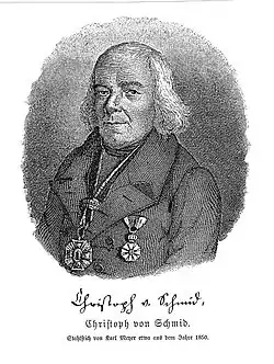 {{cite encyclopedia}}: Missing or empty|title=(help) - ^ a b Binder, "Schmid, Christoph von" in Allgemeine Deutsche Biographie, Band 31 (Leipzig, 1890), S. 657-659. (in German)