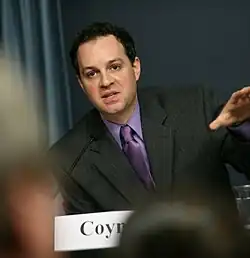 His first book, After War: The Political Economy of Exporting Democracy, was published by Stanford University Press in November 2007 (ISBN 080475439X; paperback ISBN 0804754403). After War employs the tools of economics to analyze the ability of the U.S. to export democracy abroad. The central argument is that continued efforts to export democracy through military occupation and reconstruction are more likely to fail than to succeed because of an array of constraints facing occupiers and policymakers. In the book, Coyne contends that failure is due to the inability of foreign governments to centrally plan the complex array of institutions which underpin liberal democracy. Coyne provides a new vision of U.S. foreign policy including principled nonintervention and a commitment to free trade in goods, ideas and cultural products. He presented his book at the Cato Institute in November 2007.[2] In his review of After War in the Financial Times, Samuel Brittan concluded by noting that,