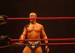 In 2000, he donned a mask and teamed (as Dos) with Aaron Aguilera (Uno) as Los Conquistadores, as part of The Hardy Boyz' feud with Edge and Christian.[4] He also appeared as one of the Los Conquistadores alongside Aaron Aguilera where they competed in the APA's bar room brawl at the WWE Vengeance pay-per-view event in 2003.
