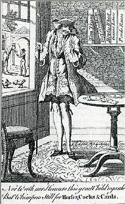 The Midwife, first published on 16 October 1751 and lasting until April 1753, was produced primarily by Smart while he worked on The Student.[56] This magazine was popular enough to be published in four editions.[57] To hide his identity for practical and humorous reasons, he adopted the persona of a midwife, also known as a "Mrs. Midwife" in slang, and called this persona "Mrs. Mary Midnight".[56]