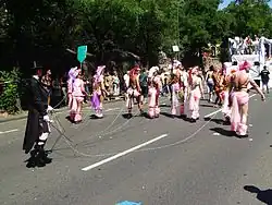 A typical Christopher Street Day Parade includes floats as well as walking groups usually provided by and made up of members of LGBT organizations, but is increasingly used also as a platform for political campaigning and commercial advertising as floats by political parties and commercially sponsored trucks are becoming more common. It is also typical to see many drag queens or women and men colorfully dressed. BDSM enthusiasts also often participate in CSDs. The parade is usually quite joyous and has a rather upbeat and exciting energy to it. In addition to the Parade and the final rallies, in many cities there are days or up to whole weeks of street festivals and cultural events with artists, political events, lectures, readings, parties and other festivities.