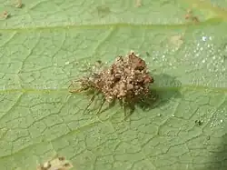 Larvae have either a more slender "humpbacked" shape with a prominent bulge on the thorax, or are plumper, with long bristles jutting out from the sides. These bristles will collect debris and food remains – the empty integuments of aphids, most notably – that provide camouflage from birds.