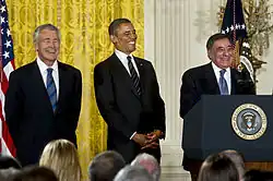- ^ Miklaszewski, JIm (November 24, 2014). "'Greatest Privilege of My Life': Chuck Hagel Resigns as Defense Secretary". NBCNews.com. Retrieved November 24, 2014.