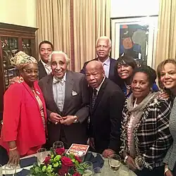 Rangel was an original member when the Congressional Black Caucus was formed in 1971.[60] While serving as a member of the Congressional Black Caucus' predecessor organization the "Democratic Select Committee," Rangel proposed giving the committee the name "Congressional Black Caucus" during a meeting with other caucus members on February 2, 1971.[61] In 1974, he was elected its chairman[2][51] and he served in that role until 1976.[62] He remained a member of the caucus for the duration of his time in office. His wife Alma was a founder and a chair of the Congressional Black Caucus Spouses, which engaged in social and fundraising activities for the Congressional Black Caucus Foundation, which in turn gave out college education grants.[63]