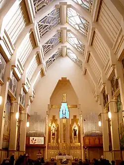 The Church of La Milagrosa is a building located in the Segundo Ensanche development area of Pamplona, built in 1928 and inaugurated in 1930, designed by the architect Víctor Eusa Razquin. It is part of the convent made for the Congregation of the Mission, which members are known as Paules locally, and therefore the church is also known with the names Padres Paúles or Misioneros Paúles.