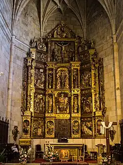 The massive altarpiece is the work of Francisco de Agreda (1571), with influences of Juan de Juni. Its style shows a transition between the plateresque style and Mannerism.