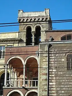 In 1839, nuns belonging to the Soeurs de la Charité (Daughters of Charity) society came from France and founded the female section of the school.[6] In 1840 the school was moved to Bebek,[7] but after the demolition of part of the Genoese ramparts of Galata, the school moved back here. In 1865 part of the left aisle and the atrium with several inscriptions burned. This part of the church was coarsely restored in 1871.[6]