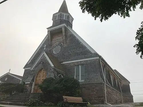 Church of Saint Lawrence is a historic Episcopal church located at Alexandria Bay in Jefferson County, New York. It was built in 1889 and is a three-by-four-bay wood-frame Shingle Style structure on a massive, raised stone foundation. It is composed of an entry porch, nave and chancel with symmetrical, octagonal ells housing organ pipes on the west and sacristy on the east.[2]