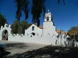 The town's original church was built more than 100 years earlier than the current church.[8] The present church was built in the 17th century during the Spanish colonial rule.[2] The patron saint is Peter.[8] It has undergone many renovations; its present walls are dated to 1744.[3] A tower was a 1964 addition,[8] while other construction occurred in 1978.[8] Restoration work on the 765 square metres (8,230 sq ft) structure occurred in 2009 under the auspices of the Department of Architecture, Antofagasta Region.[9]