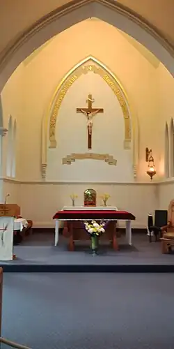 Rev. John Brennan was parish priest from 1925 to 1930 followed by Monsignor Michael Edge who served in the role from 1930 until his death in 1942, and was remembered for his "Tridentine altar arrangements...[which]...were to become the swan song of the long-standing liturgical order".[4]: p.25 In 1931, the 70th anniversary of the church was celebrated and modifications were noted as including new "Gothic arches, columns and pelmets...[and]...altar rails...[which]...emphasised the importance of the sanctuary in the existing liturgical order".[1] Monsignor Leonard Buxton was the parish priest from 1942–1949 and he is credited with modifications of the convent building, enlargement of the chapel[1] and the reconstruction of the entrance foyer.[4]: p.25