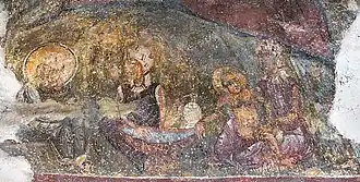 Three upper zones of the frescoes are a dedicated cycle of St. Nikola, patron saint of Staničenje. In the lower part, starting from the north, are compositions of three dukes in a dungeon. These illustrations are some of the more famous miracles of St. Nikola, but their fresco depictions are incompletely preserved. The figure of Emperor Constantine is recognizable as the person locking the wrongfully accused dukes in the dungeon, as is noted in written sources of St. Nikola.[12]