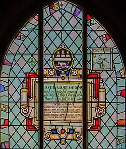 A Norman lancet window in the chancel was restored in 1947 and it remembers the men and women of Britain and Allies who died in World War II.[36][51] Another lancet window in the chancel, remembers Captain Frederick Henry Allhusen of the 9th Royal Lancers who served in South Africa during 1899.[52]