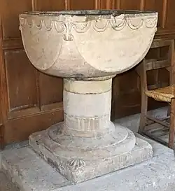 The church is largely built of Blue Lias with Doulting Stone arcade.[2] It includes the coat of arms of Simon Seward (Rector 1514–59) over the doorway.[3] The church has space for around 80 people. The electronic organ was dedicated in 1989.[4]