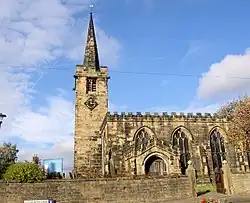 The Church of St. Mary is the parish church in Worsbrough Village in South Yorkshire, England.[1] It is a Church of England church in the Diocese of Sheffield. The building is Grade I listed[2] and was built in the 12th century, however evidence of pre-Norman Conquest stonework suggests an older building on this site. Parts of the chancel are early Norman but the church underwent several alterations in the 14th and 15th century including the installing of the south door with its Gothic inscription which dates to 1480.[3][4]