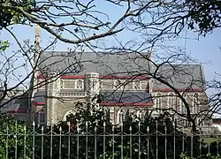 A Roman Catholic place of worship was soon provided in the growing town. Rev. John Jones, the Honorary Chaplain of the Bavarian Embassy in London, received from the will of Lady Barbara Stanley a bequest of £10,000, 16 acres (6.5 ha) of land and a house in St Leonards-on-Sea, all to be used for "religious purposes" for the benefit of Roman Catholics.[4][5] He planned to build a convent for Jesuits, and extended the house for their use. They declared it unsuitable, and the proposed chapel and convent—large, intricately designed buildings in the Italianate style, conceived by Charles Parker—were not built. Work on less ambitious Gothic Revival-style buildings began in 1837, overseen by A.W.N. Pugin, and a newly founded order of nuns—The Society of the Holy Child Jesus—moved in.[4][5] Pugin started work on a convent chapel in 1848, but it was not completed until 1869 (by his son Edward Welby) and the convent refectory initially served as a temporary chapel for the sisters and the general public. The permanent chapel was dedicated to St Michael and All Angels.[4][6][7][8]