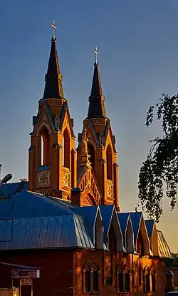 The Exaltation of the Holy Cross Church (Russian: Церковь Воздвижения Святого Креста) is a Catholic church, and a protected historical monument in the city of Tambov, Russia. It is in the Diocese of San Clemente at Saratov, and located at Kranstadtskaya 14. The church was begun in 1898 and was operating in 1903, although the finishing works continued for several more years. The church itself was built in the Gothic style, made of red brick, and richly decorated. Along with the church, a stone two-story house was built in which the Catholic charitable society, the library, and the abbot's quarters were located.