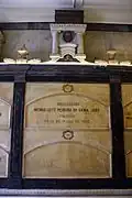 The practice of burying important people inside churches was very common until the inauguration of the Consolação Cemetery in 1858. The remains of personalities such as Brigadier Rafael Tobias de Aguiar, patron of the 1st Riot Police Battalion, Francisco Antônio de Sousa Queirós, Ana Blandina da Silva Prado and Brigadier Luís Antônio can be found in the grave located in one of the rooms inside the Church of the Wounds of the Seraphic Father Saint Francis.[12][13]