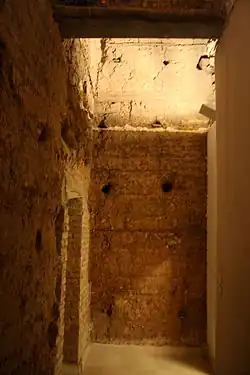 A grave located in one of the rooms on the side of the church.