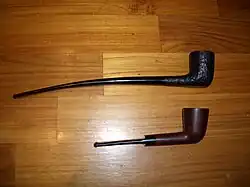 A churchwarden pipe is a tobacco pipe with a long stem. The history of the pipe style is traced to the late eighteenth or early nineteenth century.[1] Some churchwarden pipes can be as long as 16 inches (40 cm). In German the style is referred to as "Lesepfeife" or "reading pipe", presumably because the longer stem allowed an unimpeded view of one's book, and smoke does not form near the reader's eyes, allowing one to look down.