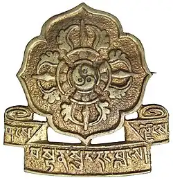 The 14th Dalai Lama conferred the rank of Dsasak to Andrug Gompo Tashi in a letter: “You have led the Chushi Gangdrug force with unshakeable determination to resist the Chinese occupation army for the great national cause of defending the freedom of Tibet. I confer on you the rank of Dzasak (the highest military rank equivalent to general) in recognition of your services to the country. The present situation calls for a continuance of your brave struggle with the same determination and courage”.[25] In addition, Andrug Jindak received gifts of priceless religious relics including an earthen statue of God of Protection Jigchi Mahai and holy beads.[25]