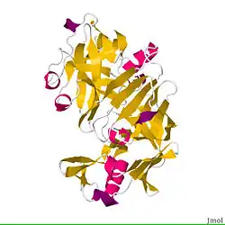- ^ PDB: 4CMS; Newman M, Safro M, Frazao C, Khan G, Zdanov A, Tickle IJ, et al. (October 1991). "X-ray analyses of aspartic proteinases. IV. Structure and refinement at 2.2 A resolution of bovine chymosin". Journal of Molecular Biology. 221 (4): 1295–309. doi:10.1016/0022-2836(91)90934-X. PMID 1942052.