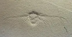 The Palaeontinidae or "giant cicadas" (though only distantly related to true cicadas) come from the Jurassic and Lower Cretaceous of Eurasia and South America.[20] The first of these was a fore wing discovered in the Taynton Limestone Formation of Oxfordshire, England; it was initially described as a butterfly in 1873, before being recognised as a cicada-like form and renamed Palaeontina oolitica.[22]